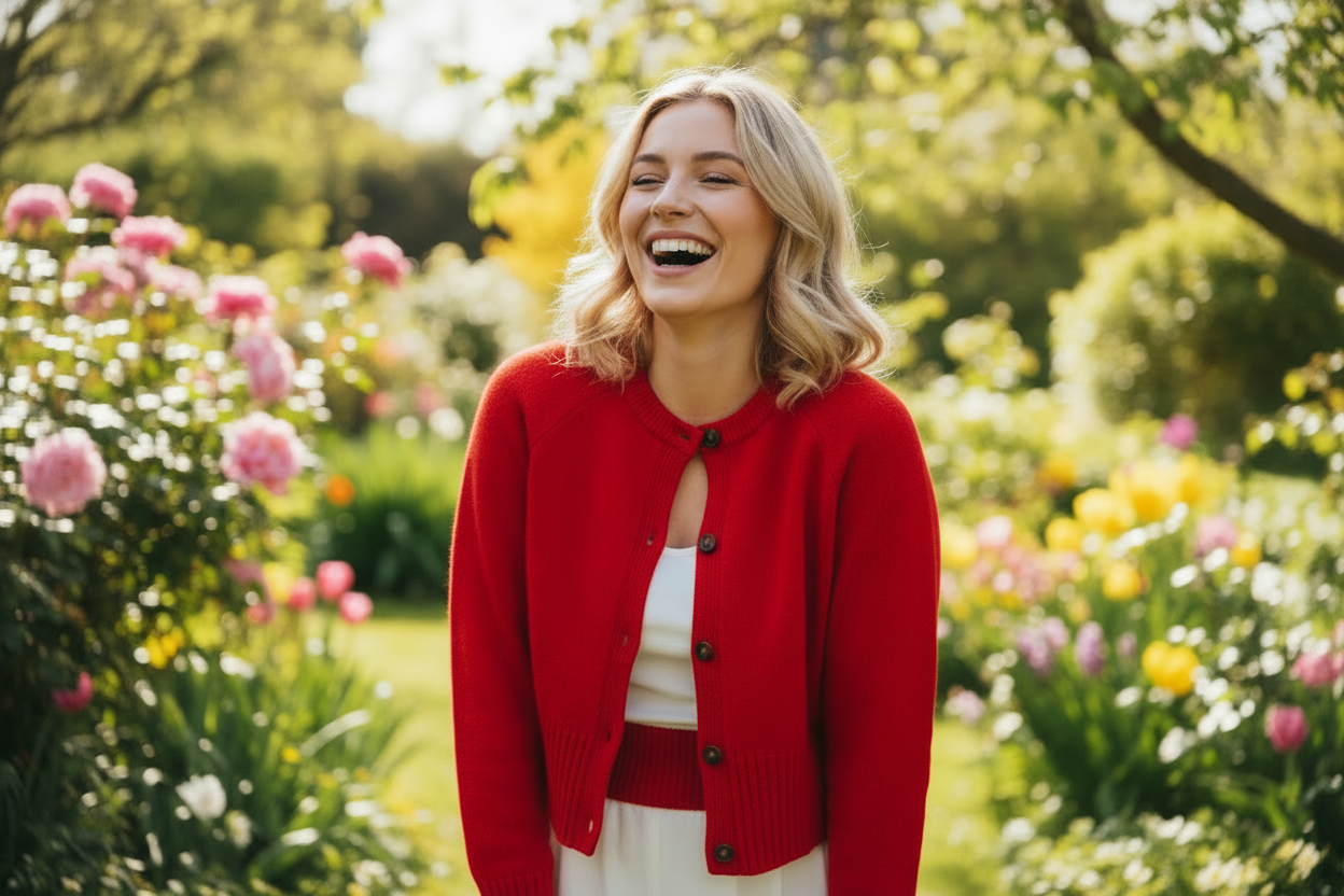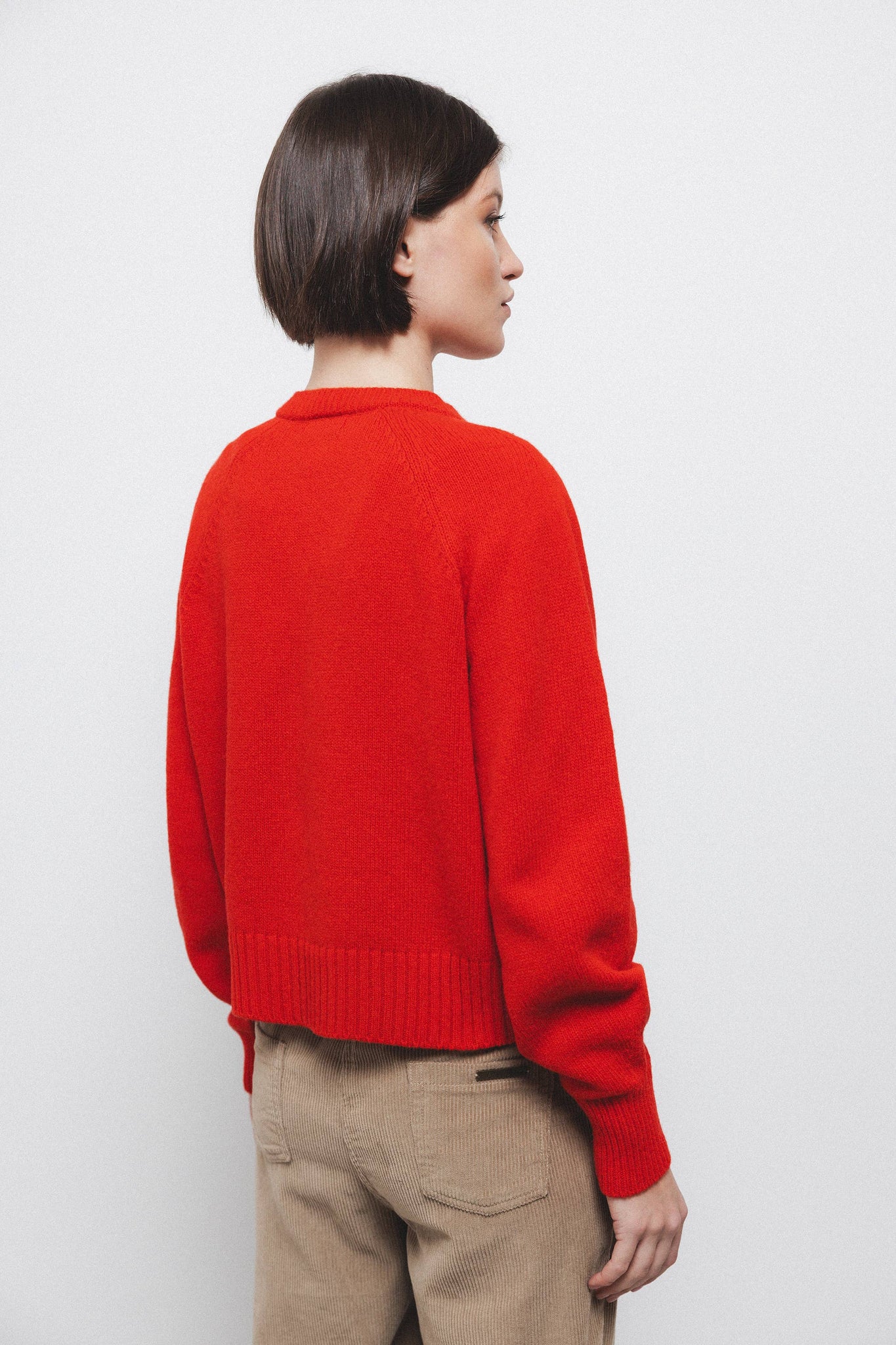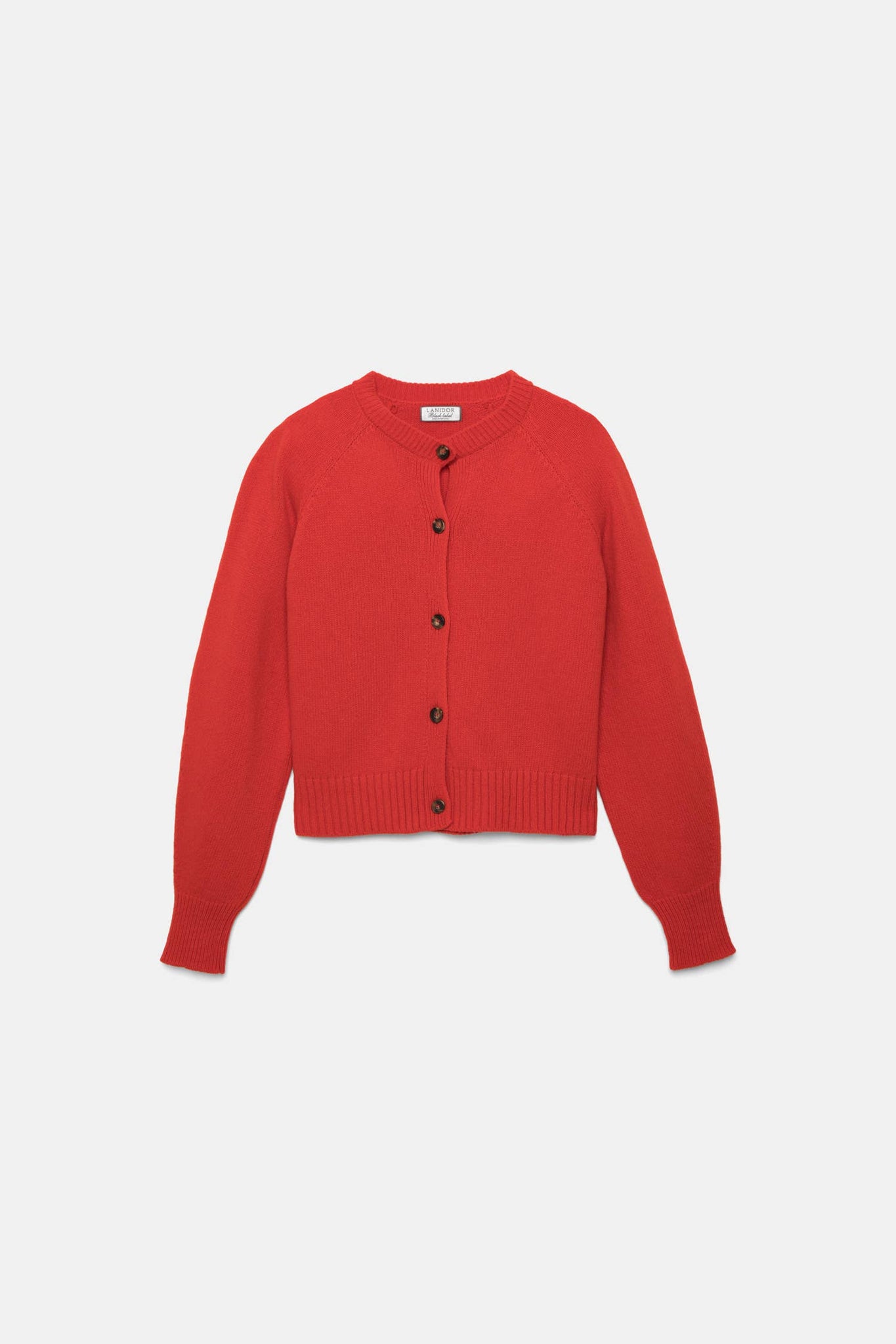 Gilet en maille unie avec encolure ronde et manches longues. Ouverture frontale avec fermeture par boutons de couleur contrastante. Finitions côtelées aux poignets hauts, à l'encolure et à l'ourlet.
