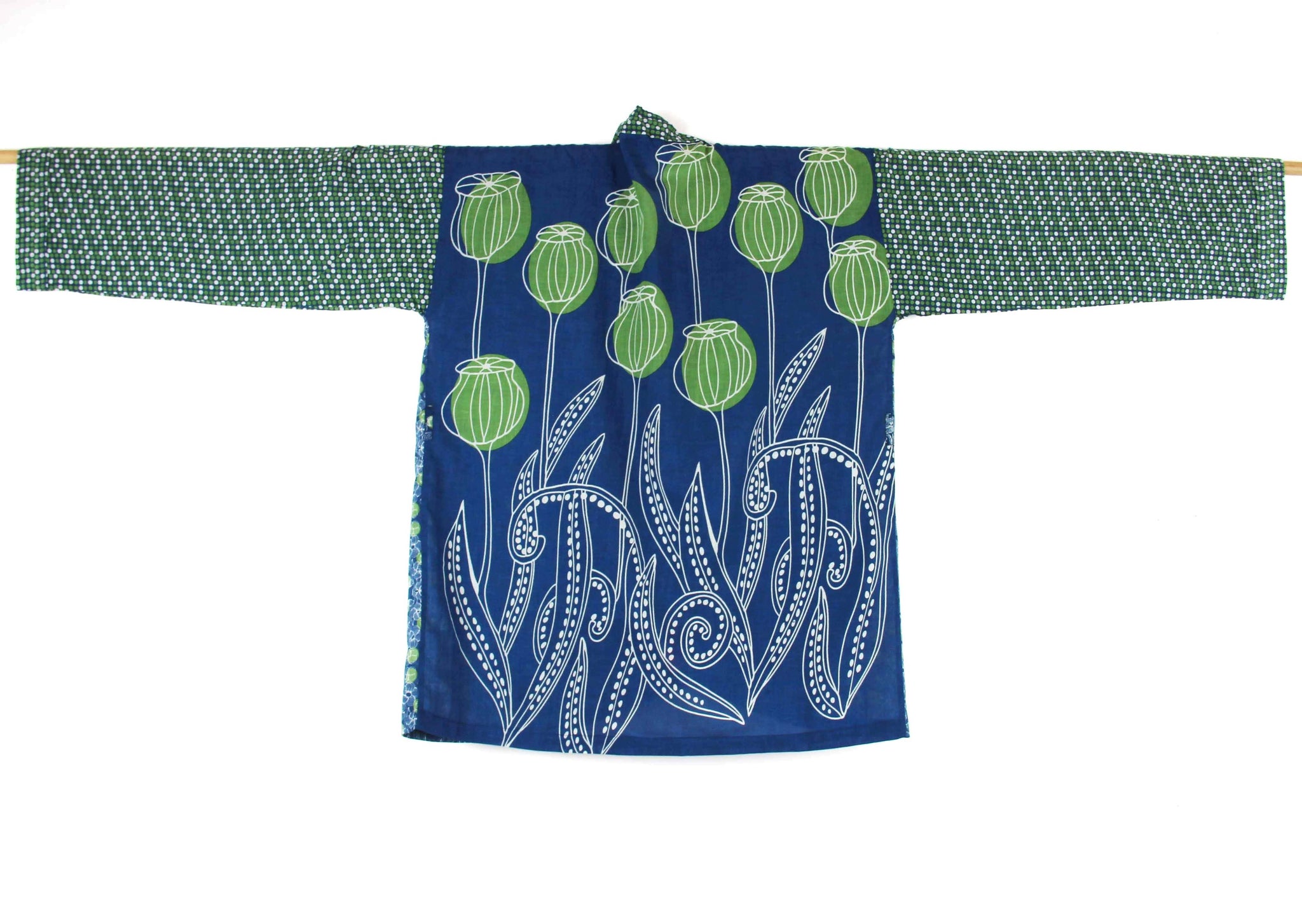 L’impression artisanale procure des couleurs profondes et subtiles. Nos kimonos sont vendus en taille unique. Ils peuvent être portés à la plage par-dessus un maillot de bain ou en chemise légère en été. La qualité du coton est exceptionnelle, un tissu léger et d’une douceur très agréable.
