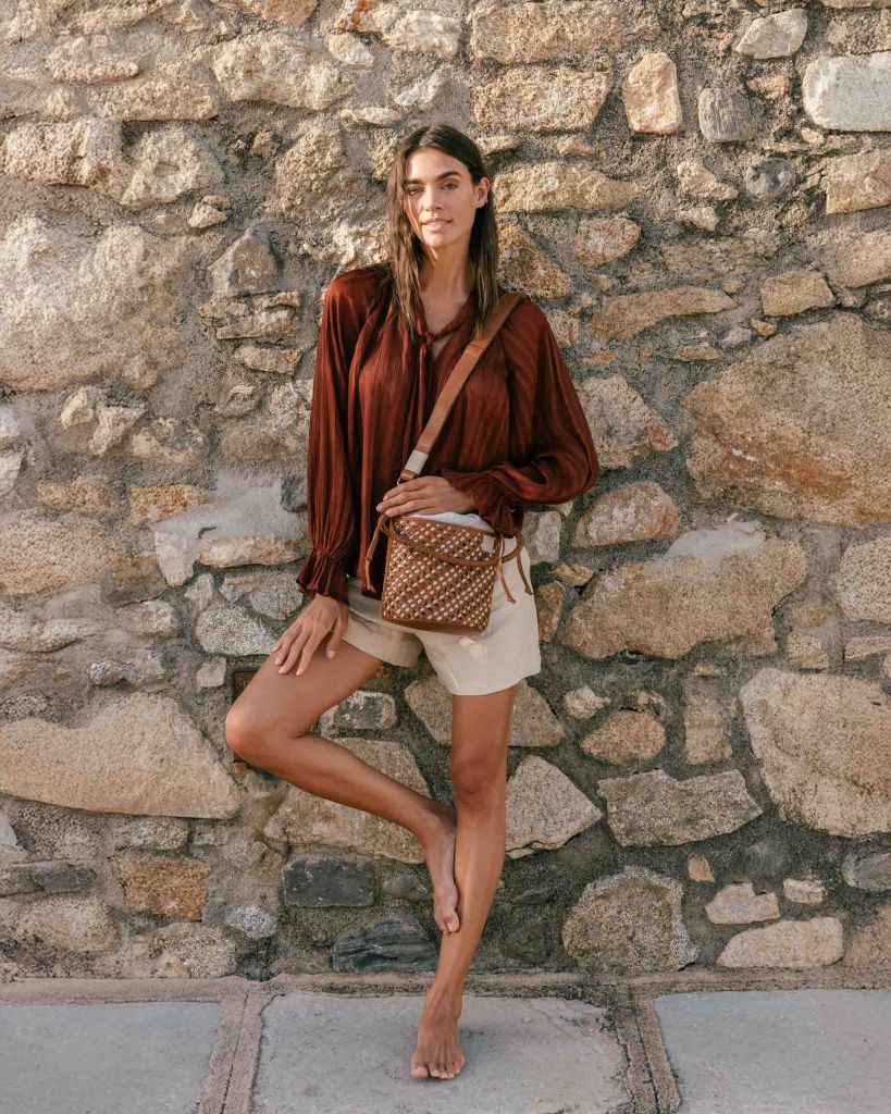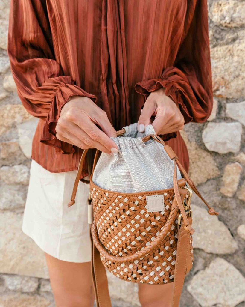 Sac seau avec anse pour porté main et une bandoulière amovible pour un porté travers.
