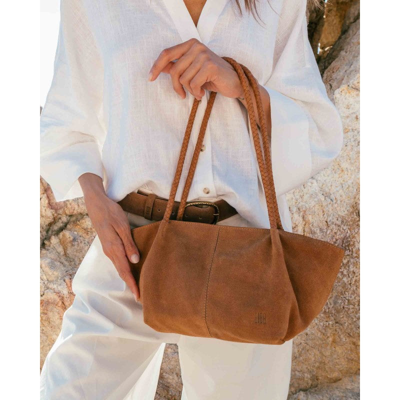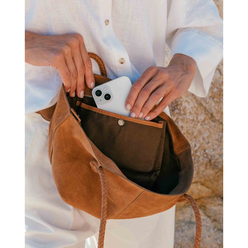 Shopper petit format de baguette en cuir de boeuf retournée (suédine)